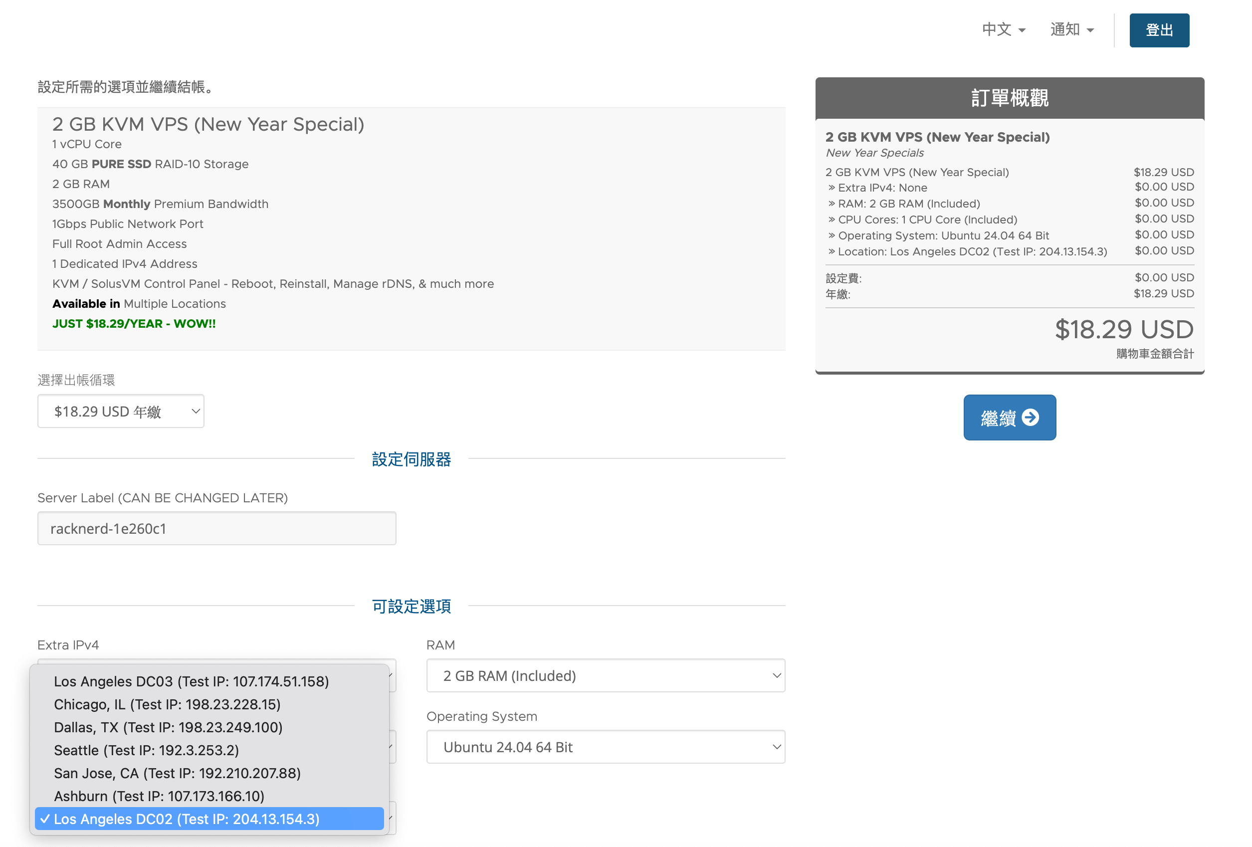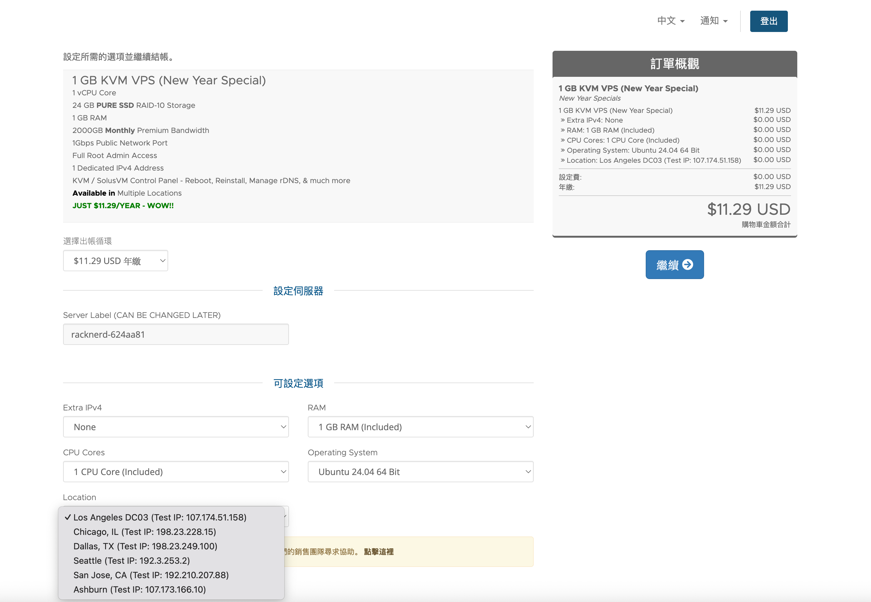RackNerd新年 VPS 特惠,Los Angeles DC-02 有货,年付$11.29起